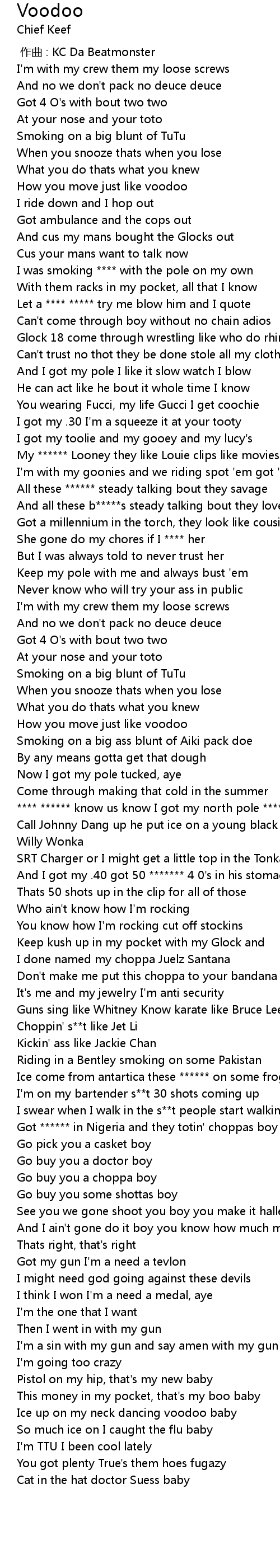 | [04:45.14] | Ice up on my neck dancing voodoo baby |