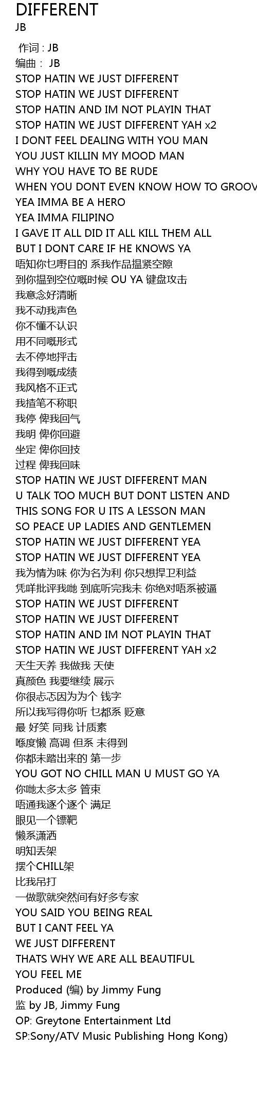 | [01:44.03] | STOP HATIN WE JUST DIFFERENT YAH x2 |
