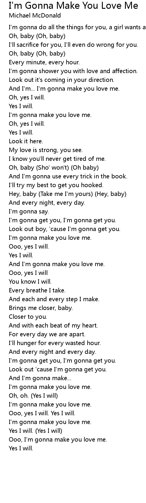 I'm gonna make you love me. |