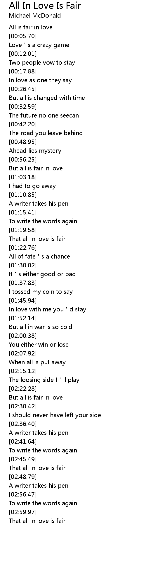 | [02:46.74] | That all in love is fair |