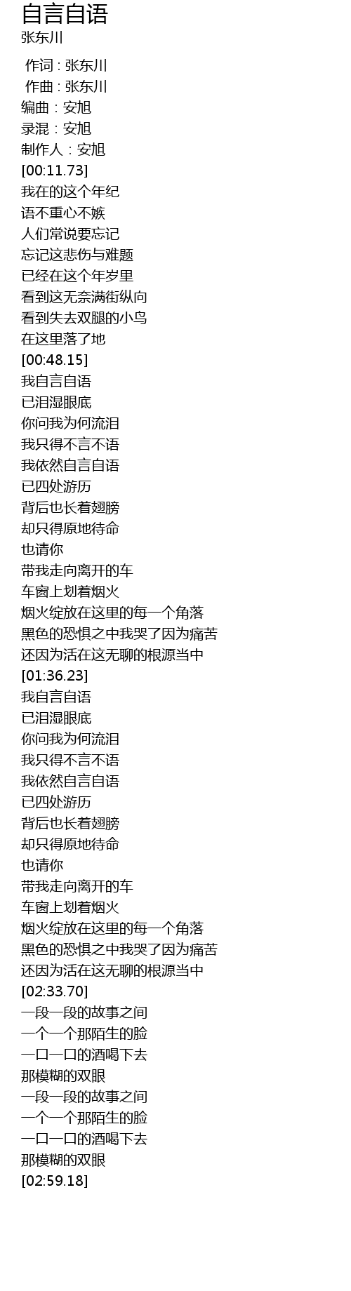 | [00:00.000] | 作词 : 张东川 |