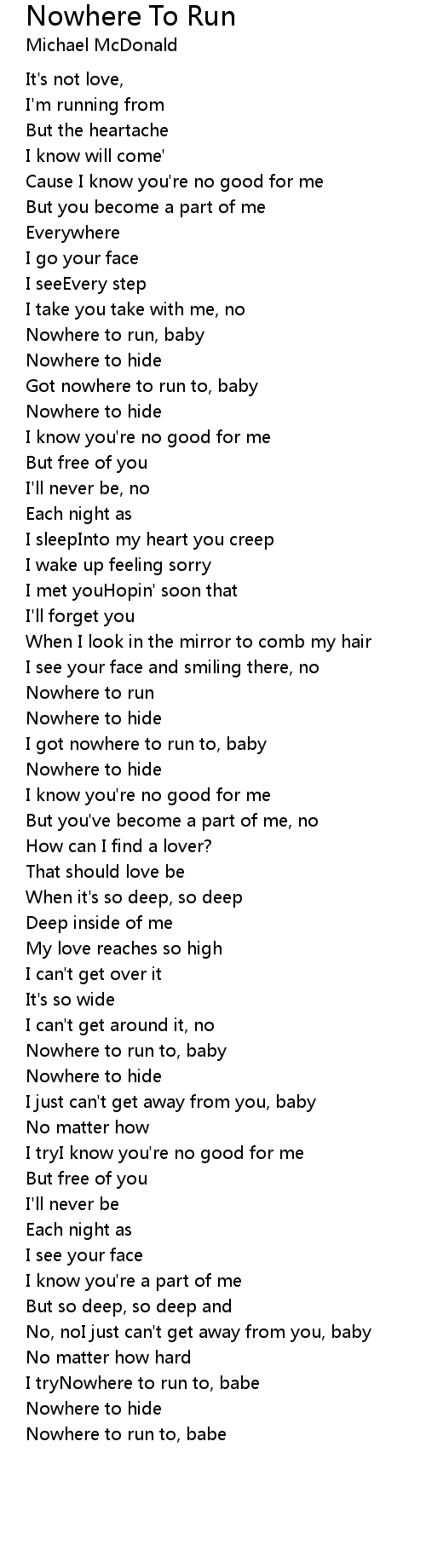 Nowhere To Run Lyrics