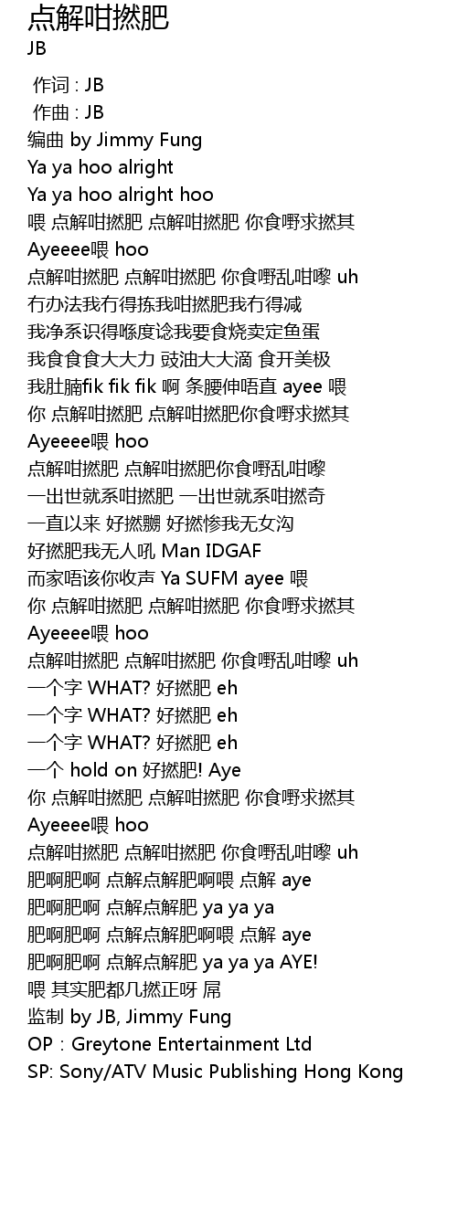 | [01:38.71] | 你 点解咁撚肥 点解咁撚肥 你食嘢求撚其 |