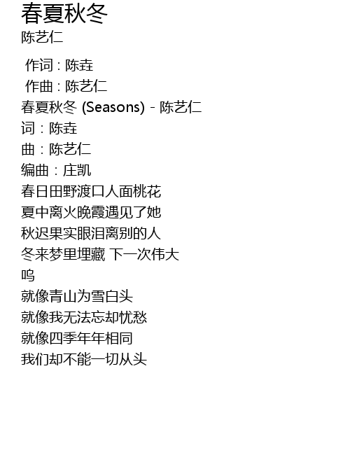| [00:12.431] | 春夏秋冬 (Seasons) - 陈艺仁 |