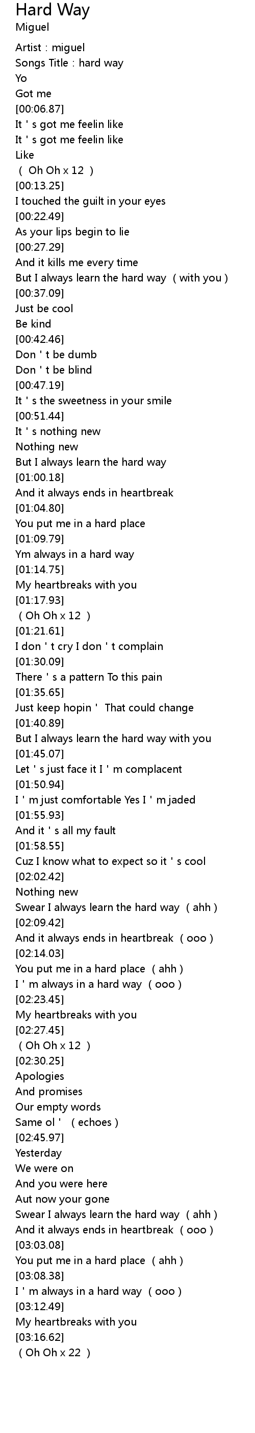 | [00:00.94] | Artist: miguel |