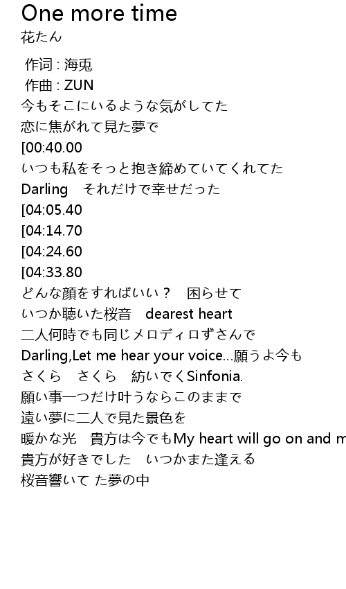 | [00:41.30][04:05.40] | One more time さくら 探し求め続けて |