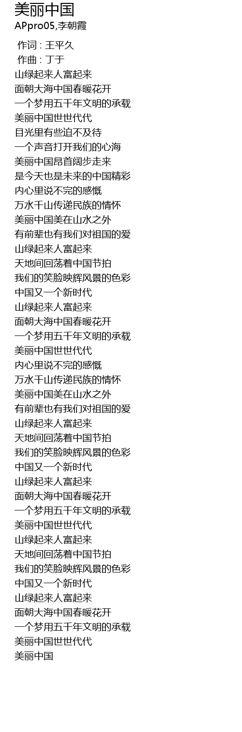 | [00:45.47] | 美丽中国昂首阔步走来 |