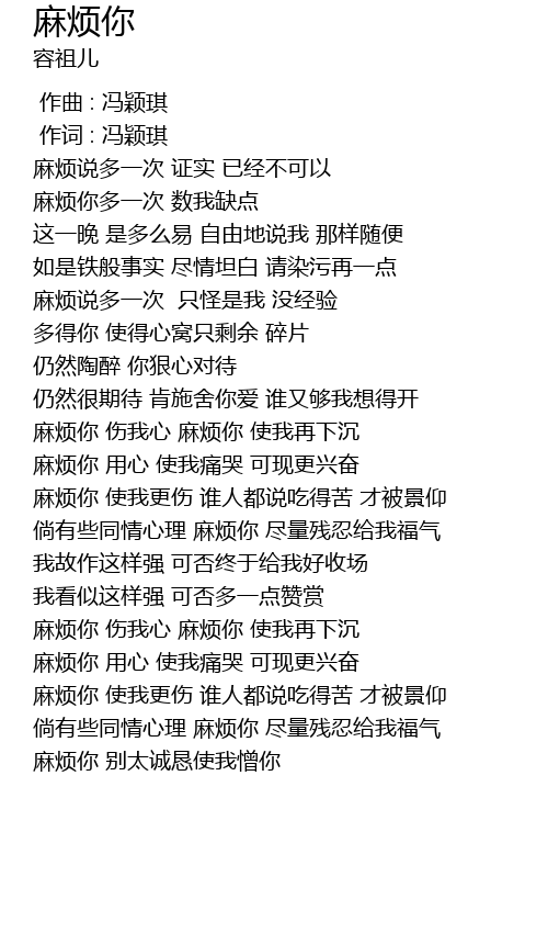 | [02:41.70] | 麻烦你 别太诚恳使我憎你 |