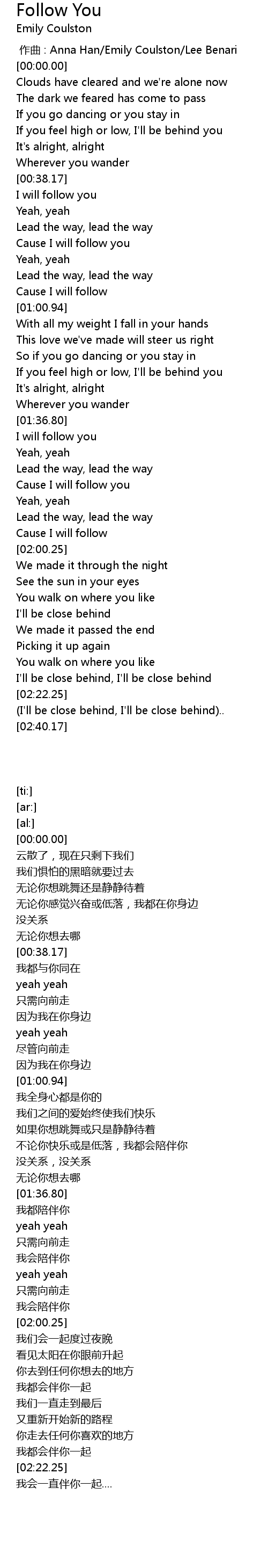 | [02:17.20] | I'll be close behind, I'll be close behind |