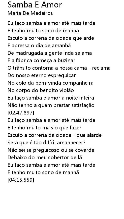 | [03:52.684] | Eu fa o samba e amor ate mais tarde |