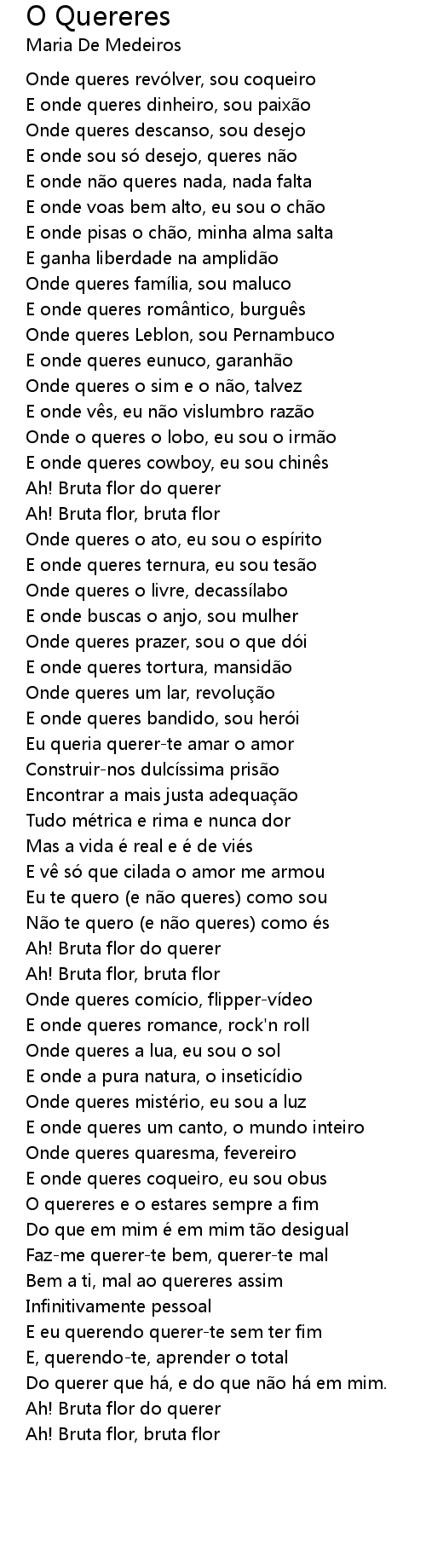 | [02:00.407] | E onde queres ternura, eu sou tesão |