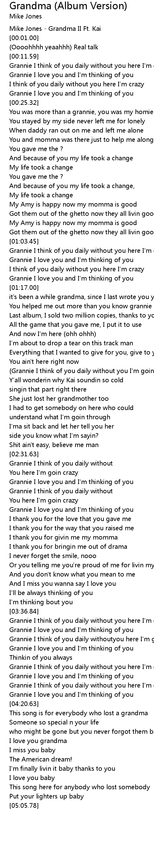 Grannie I think of you daily withoutyou here I'm goin crazy |