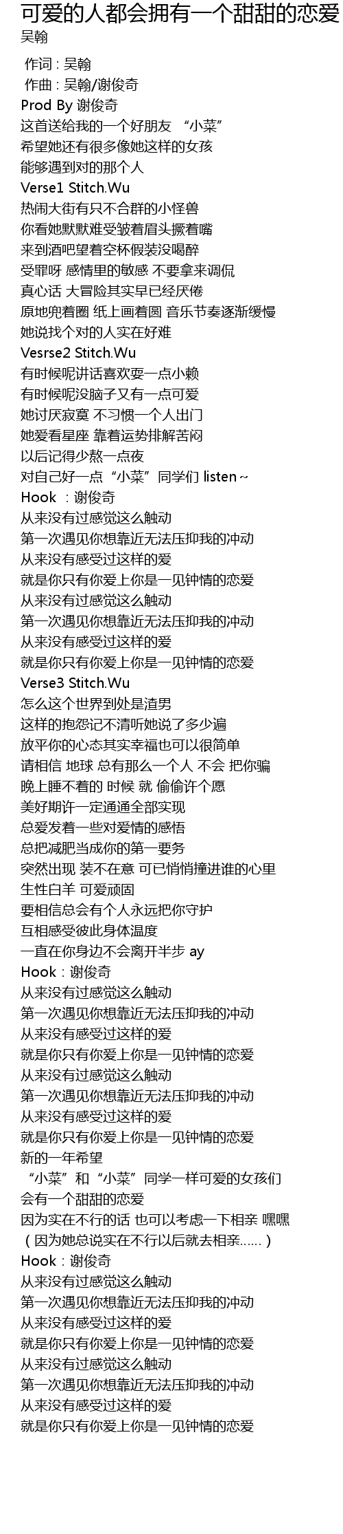 | Song | 可爱的人都会拥有一个甜甜的恋爱 |