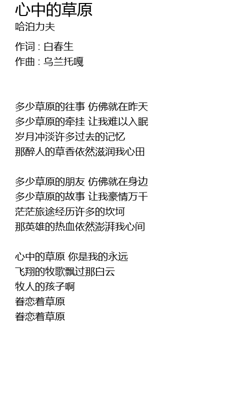 | xin zhong de cao yuan ni shi wo de yong yuan | |