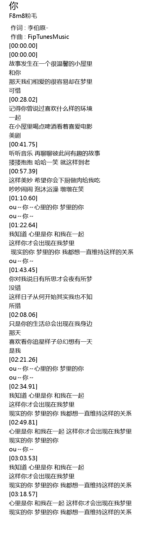 | [02:21.92] | ou~你~心里的你 梦里的你 |