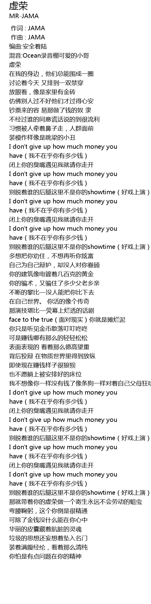 | [01:40.455] | I don't give up how much money you have(我不在乎你有多少钱) |