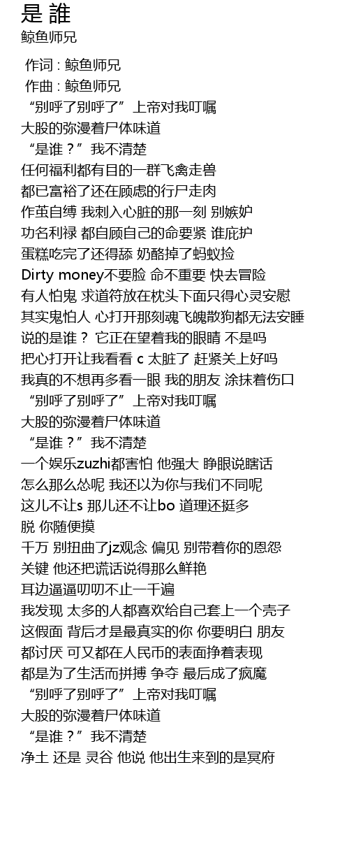 | [00:00.000] | 作词 : 鲸鱼师兄 |