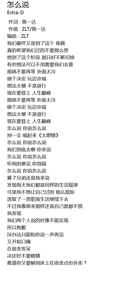 | [01:13.928] | 怎么说 你说怎么说 |