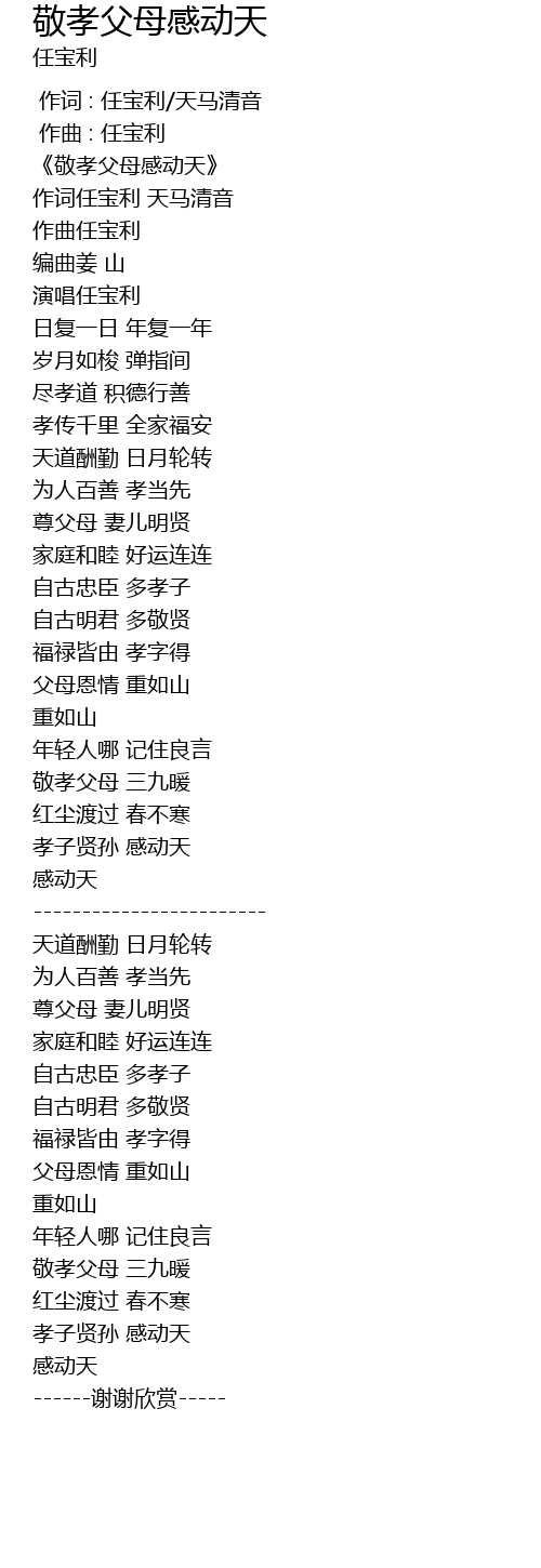 | [00:00.000] | 作词 : 任宝利/天马清音 |