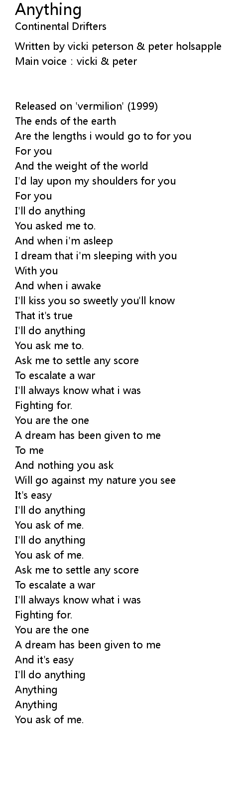 | I' ll do anything | |