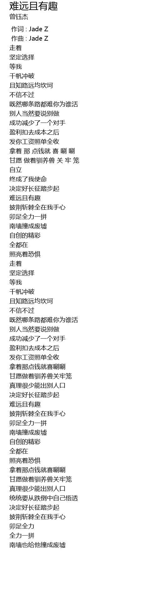 | [00:00.000] | 作词 : Jade Z |