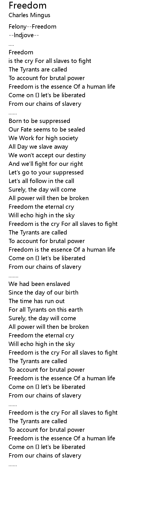 | [01:38.81] | Freedom is the cry For all slaves to fight |