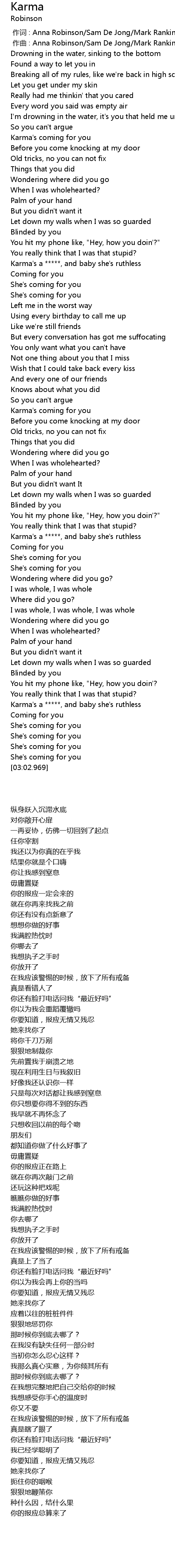 | [02:38.903] | Karma' s a , and baby she' s ruthless |