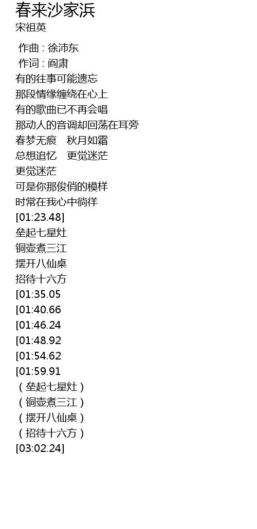 | [02:44.27][01:59.91] | chūn lái shā jiā bāng |