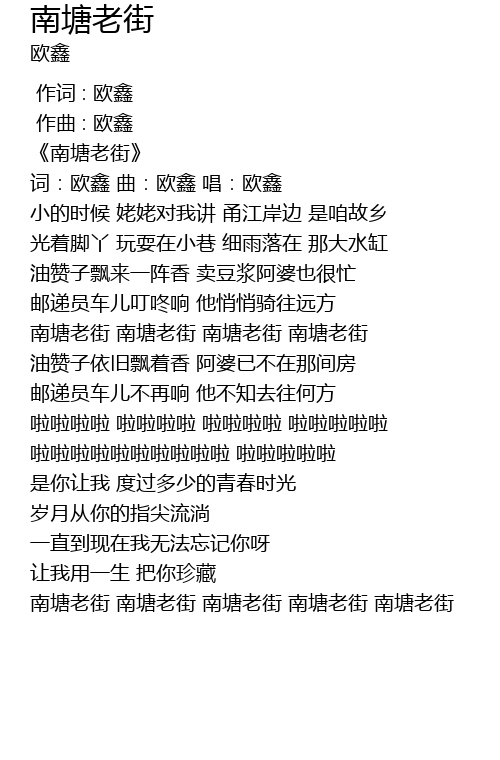 | [01:41.300] | 南塘老街 南塘老街 南塘老街 南塘老街 |