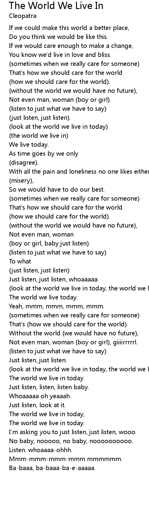 (look at the world we live in today, the world we live in), |