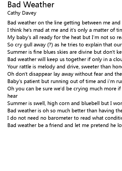 Bad weather is oh so much better than having the blues to stay |