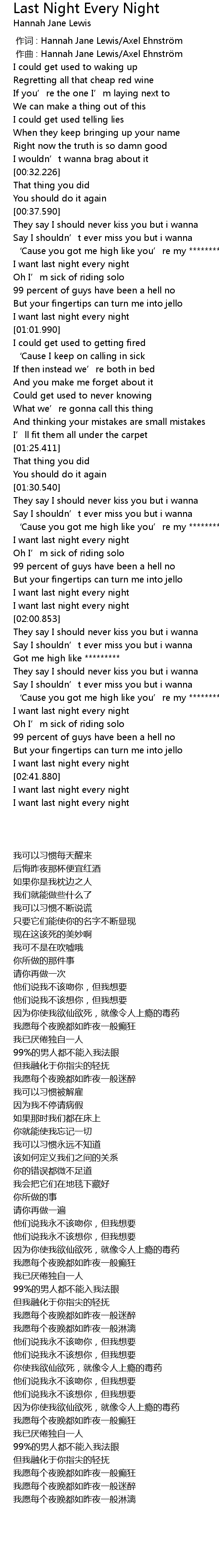 | [00:00.000] | 作词 : Hannah Jane Lewis/Axel Ehnström |