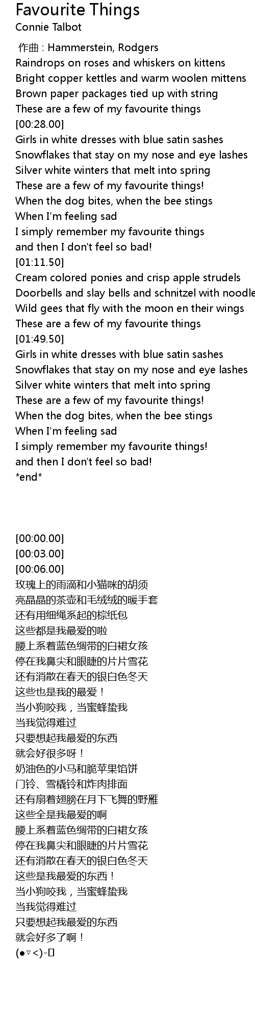 | [00:45.60] | These are a few of my favourite things! |