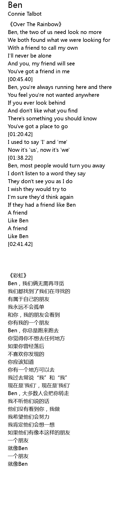 | [02:35.70] | Like Ben |