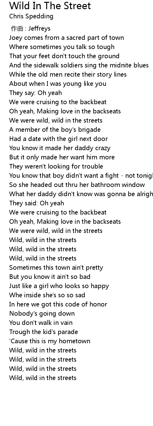 | [03:00.57] | Wild, wild in the streets |