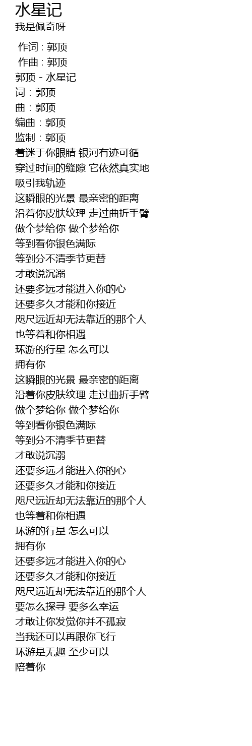 | [00:00.16] | 郭顶 - 水星记 |