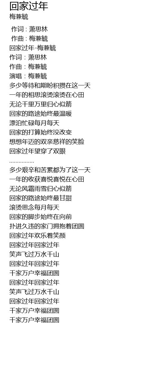 | [02:22.64] | 回家过年欢乐着笑颜 |