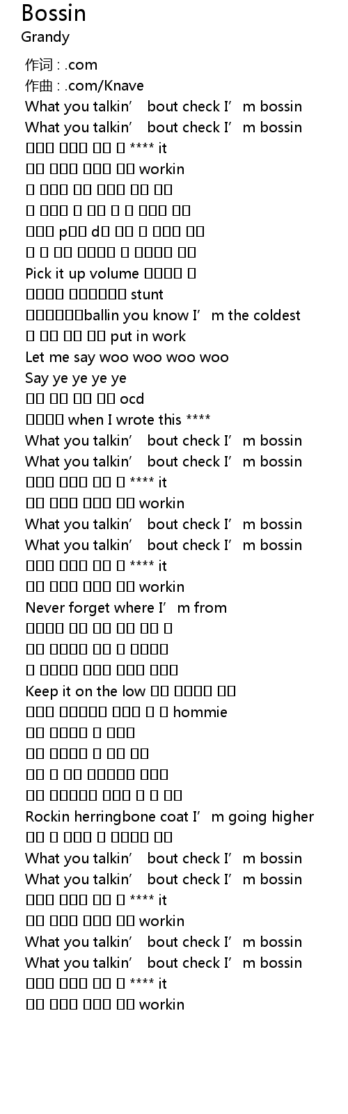 | [00:15.368] | What you talkin' bout check I' m bossin |