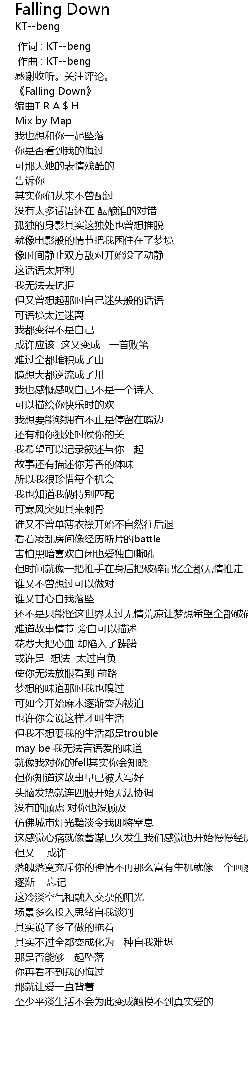 | [00:09.311] | wǒ yě xiǎng hé nǐ yì qǐ zhuì luò |