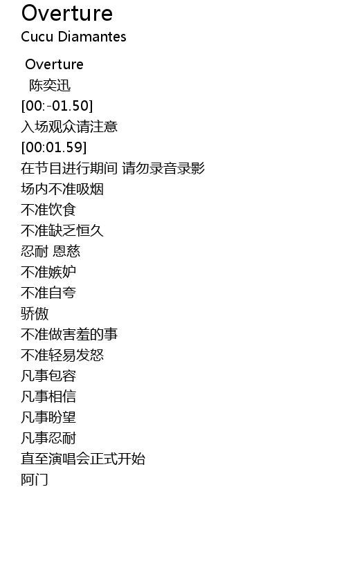 | [00:00.59] | rù chǎng guān zhòng qǐng zhù yì |