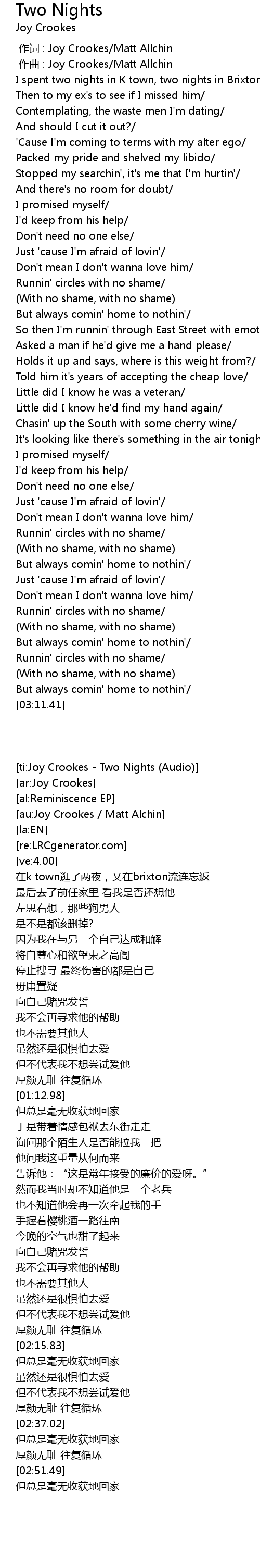 | [00:01.000] | zuo qu : Joy Crookes Matt Allchin |