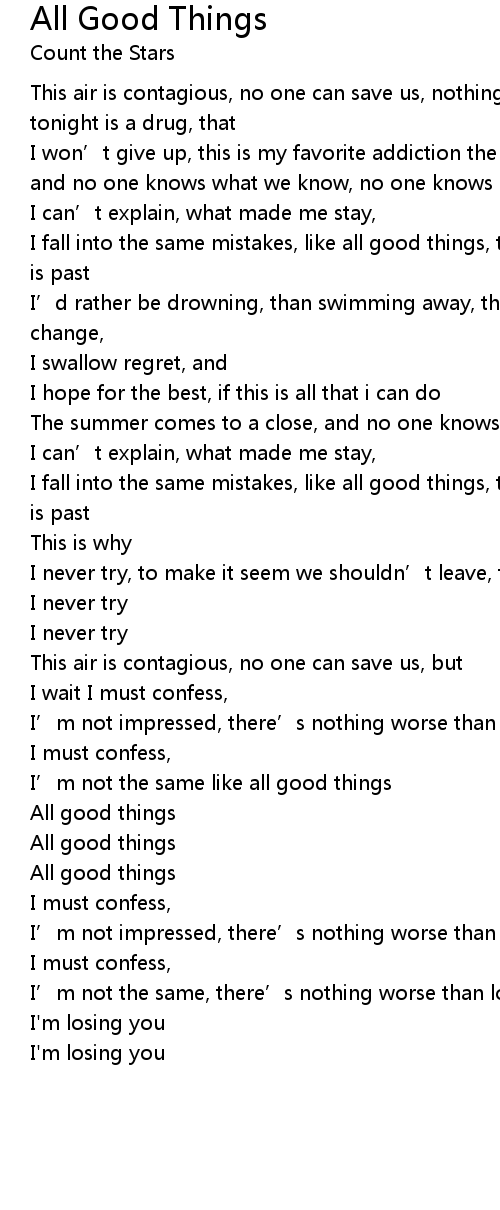 | This air is contagious, no one can save us, nothing this good could ever last, tonight is a drug, that | |