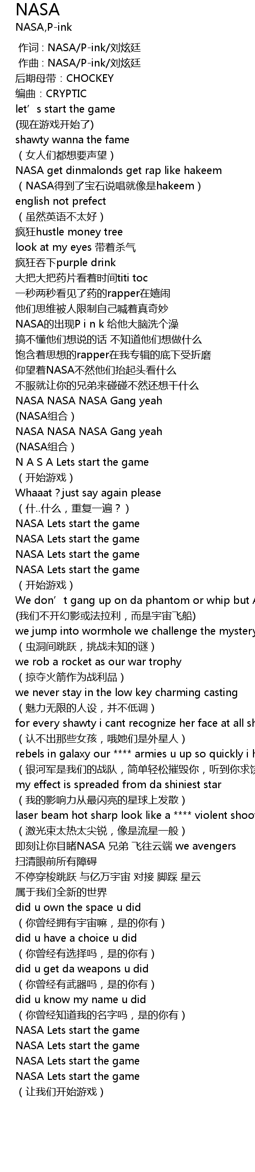 | [01:09.557] | NASA NASA NASA Gang yeah |
