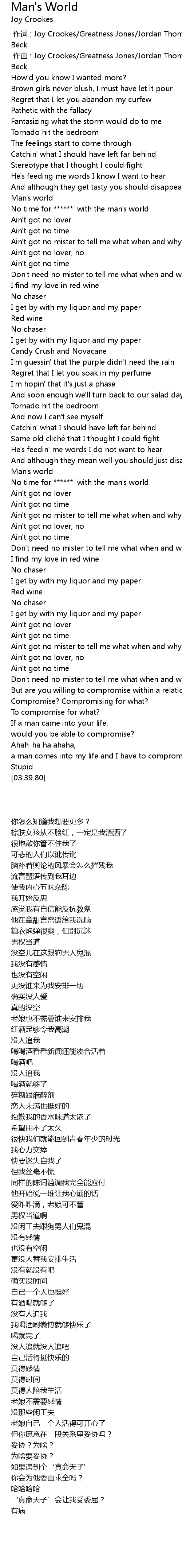 | [00:53.45] | Man's world |