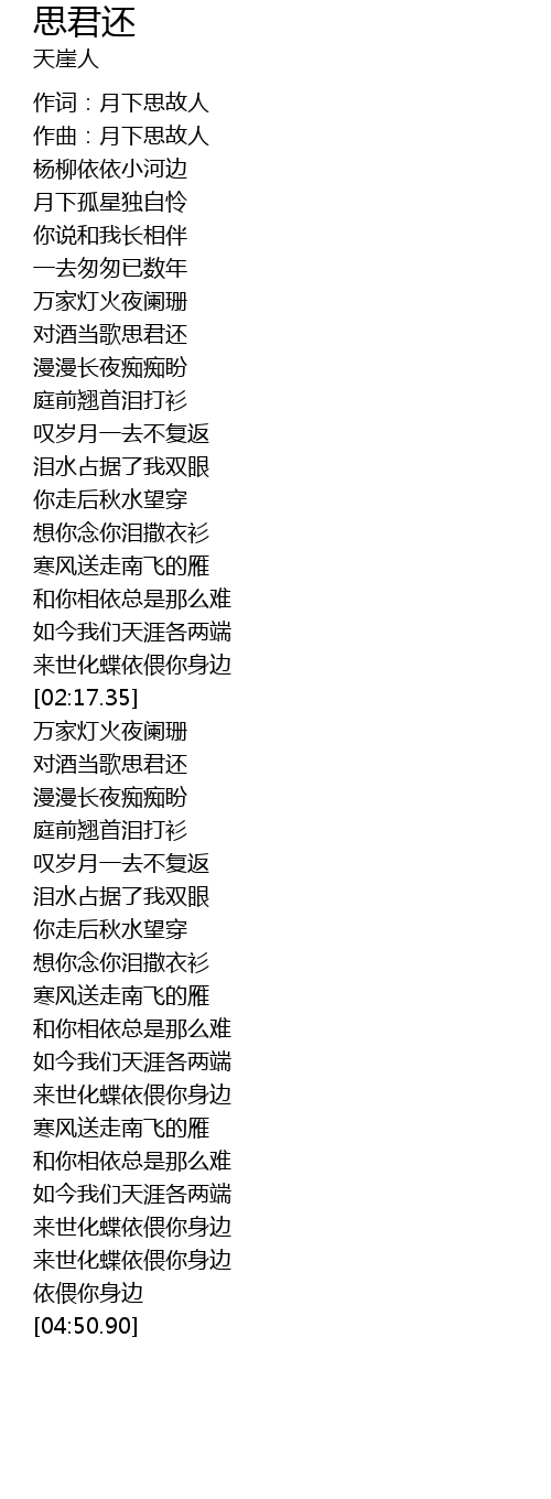 | [04:31.99] | 来世化蝶依偎你身边 |
