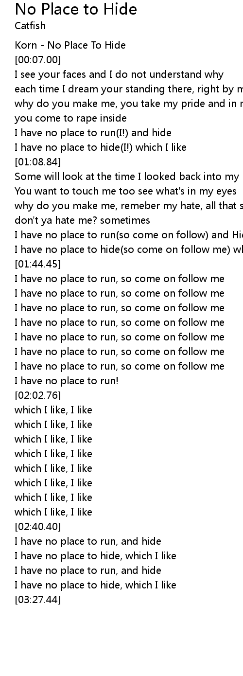 | [00:59.18] | I have no place to hide(I!) which I like |