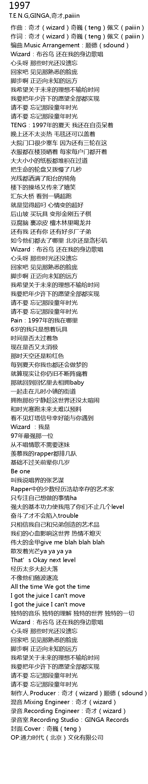 | [00:34.013] | TENG: 1997 nián de xià tiān wǒ hái zài zì gòng dāi zhe |