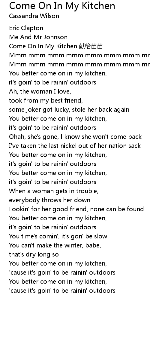 | [00:53.29] | You better come on in my kitchen, |