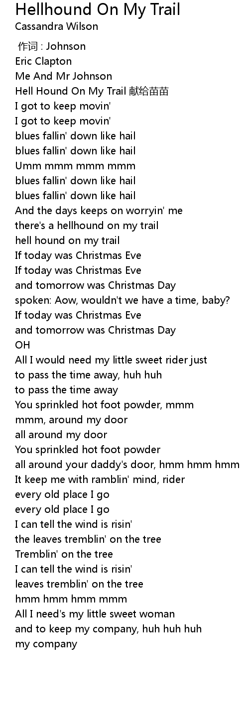 | [00:03.06] | Hell Hound On My Trail 献给苗苗 |