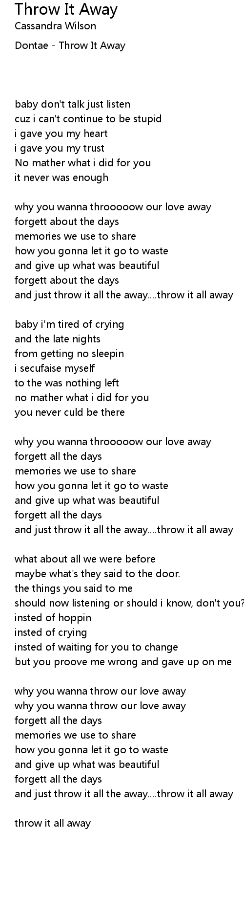 and just throw it all the away....throw it all away |